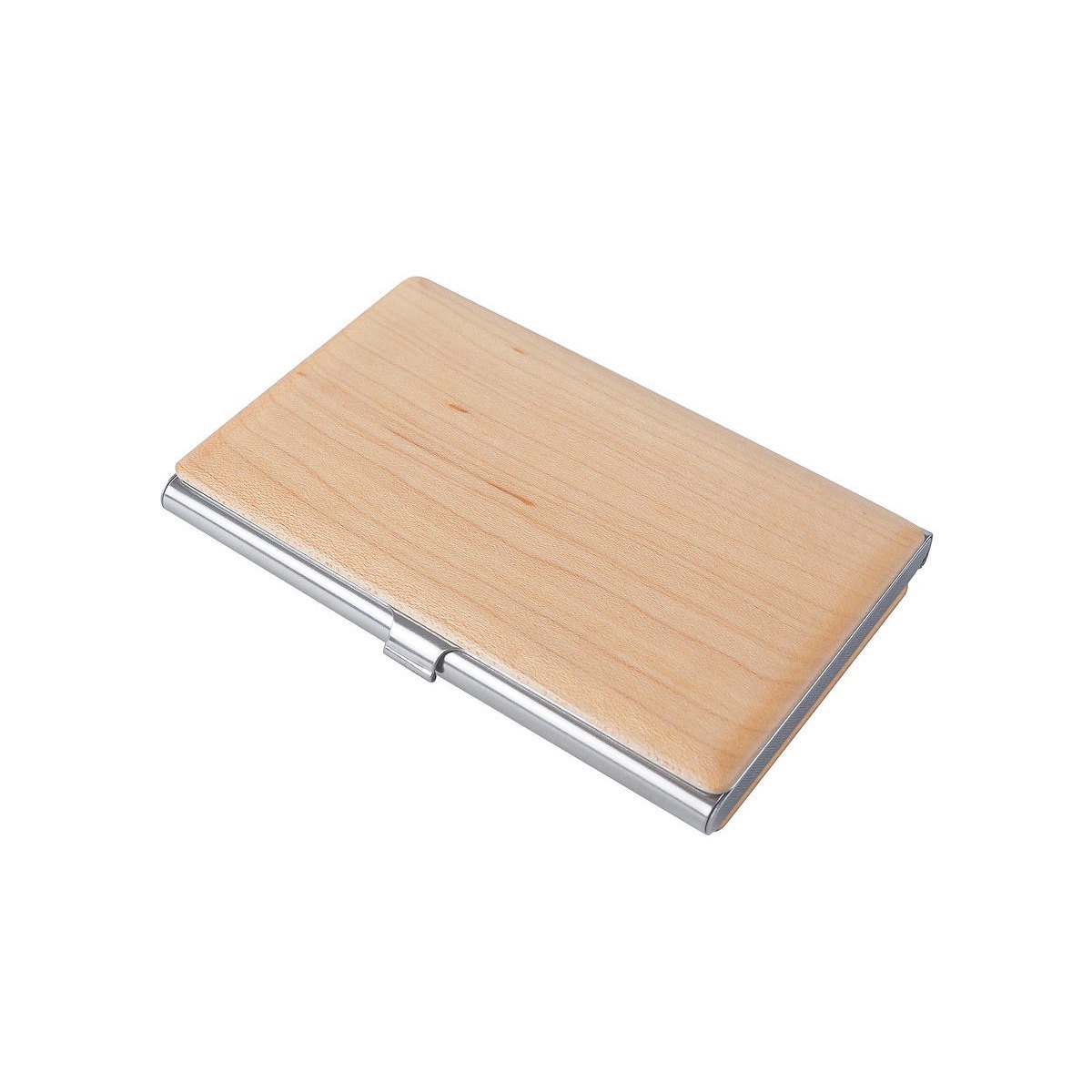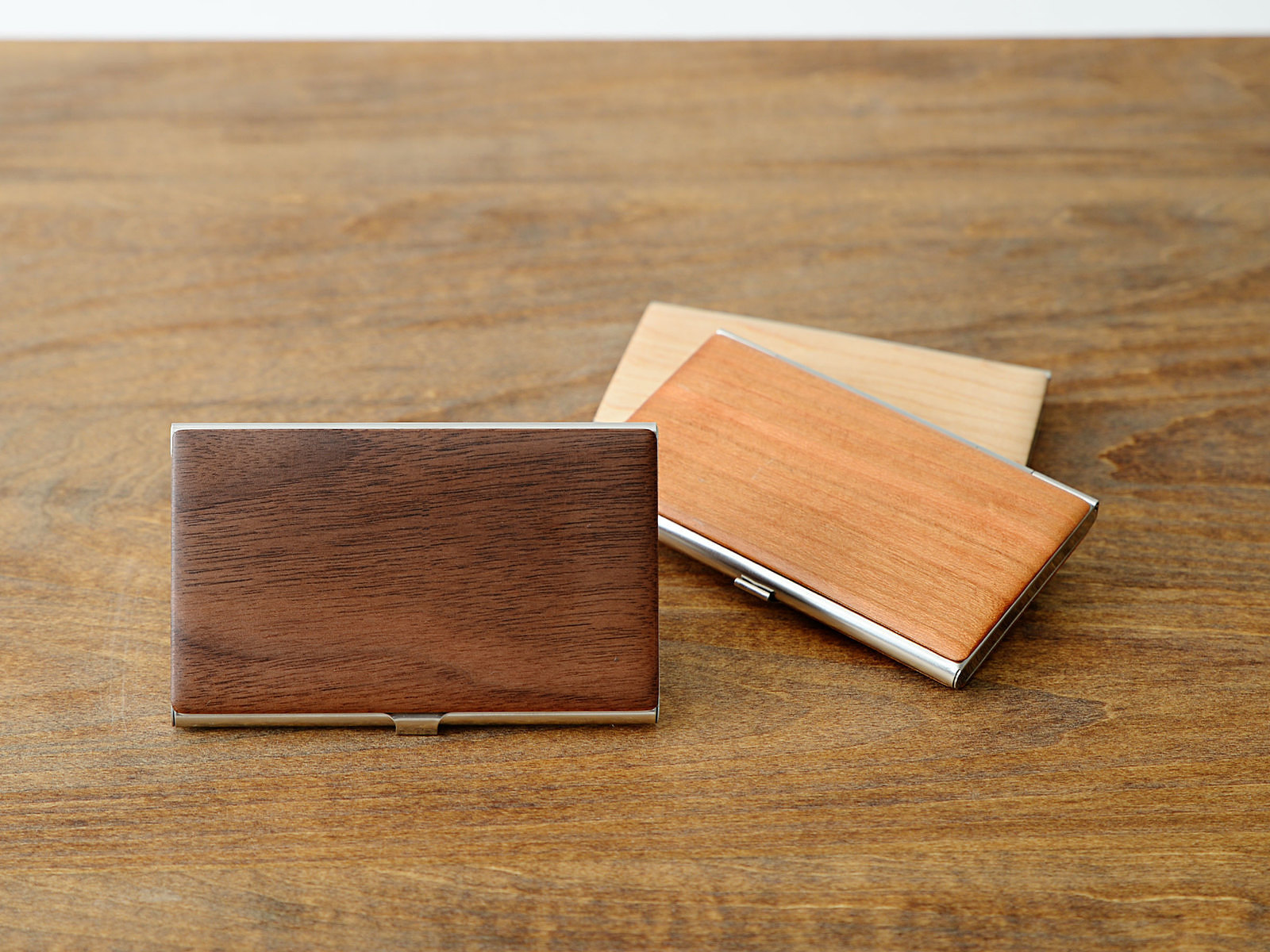 天然木の肌触りがあたたかみを感じる名刺入れです。自然素材とステンレスのコントラストが上品で、名刺交換での印象をアップしてくれます。