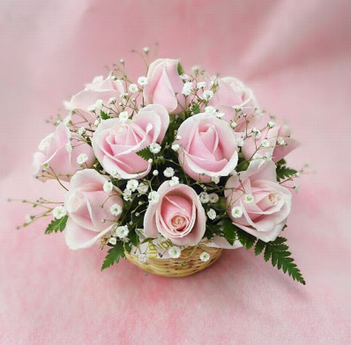 大口注文・法人のお問い合わせはこちら優しい桜色のバラで可愛くも大人の雰囲気のある貰って微笑んでしまう色合いです。