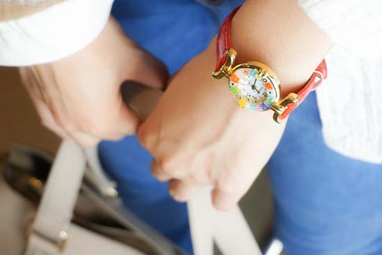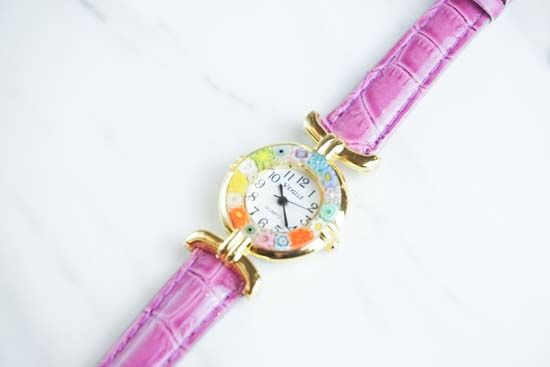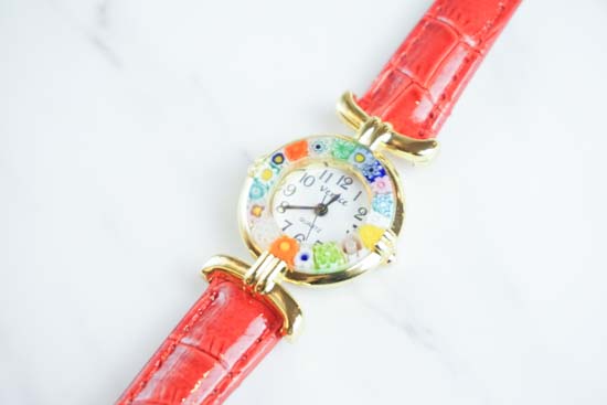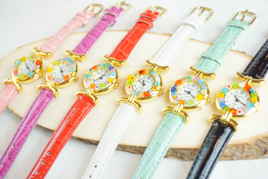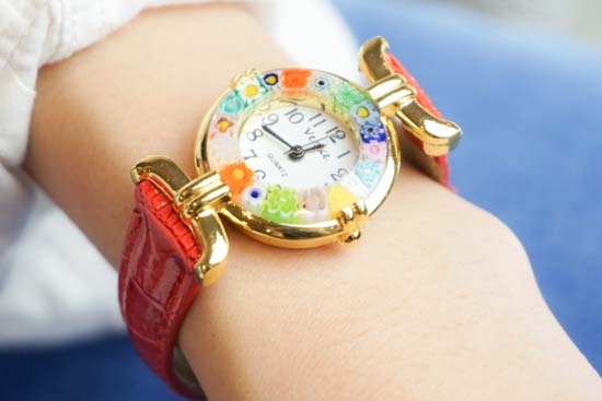 細いベルトに小さめの文字盤なのでスーツと合わせても違和感なくお使いいただけますので普段使いしてもらってもいいですし、休日などに私服と合わせても非常に可愛らしいアイテムとなります。 これからの夏の季節。半袖を着て寂しくなった女性の手元を美しく飾ること間違いなしです! 大好きな人、感謝している人、大切な人に、素晴らしいヴェネチアングラスのプレゼントを贈ってみてはどうですか!