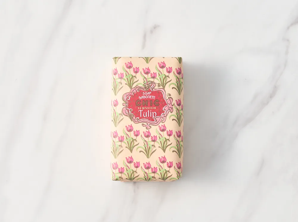 CHIC - TULIP フローラル系の香りはフォゲットミーノット、ピンクペッパー、チューリップがブレンドされています。 パッケージにはヴィンテージデザインの華麗なチューリップが描かれています。 トップノート:ラベンダー、フォゲットミーノット ハートノート:キウイ、ピンクペッパー、ポピー、パチョリ ベースノート:ムスク、トンカビーン、リリー、サンダルウッド