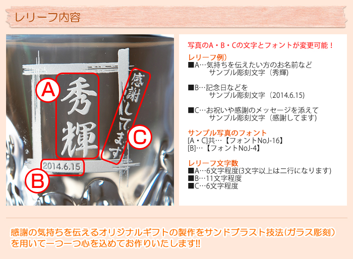 名入れ(レリーフ)するフォントをお選びいただけます。