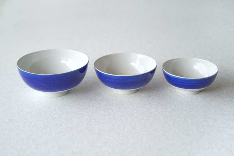 デザイナー吉田氏の出身地でもある石川県小松市。 吉田氏のご実家も九谷焼の上絵付けをする窯元だそうです。デザインによって生まれ故郷の銘品の新しい表情を引き出す、地域に根差したプロダクトです。 お茶碗『くーわん』は石川県小松市にある東製陶所さんで製作されています。九谷焼の産地で生地の製作から仕上げまで、ひとつひとつ手作業でていねいにつくられています。薄く軽やかな磁器で、青藍(せいらん)色の刷毛目が静かな海のような、飽きのこない美しさです。