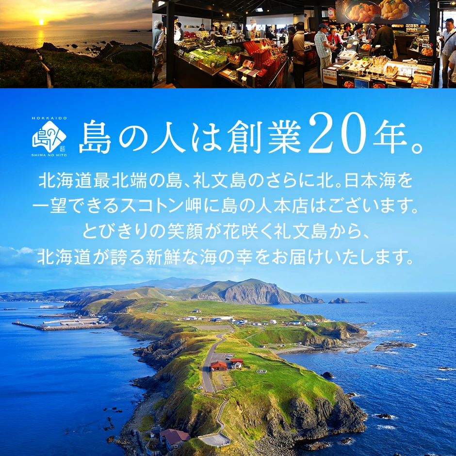 おもわず「笑」のこぼれるギフトセット。多くのメディアでも北海道の美味しさが詰まったギフトとして話題になっております。いくら、数の子、ホッキなどの海鮮具材をふんだんに使った海鮮漬や、利尻昆布だしのうまみを存分に生かした紅ホッケの干物、秋鮭、サーモンハラス昆布重ね巻など。【島の人】の人気商品を詰め合わせた、お酒やご飯のお供に最適なギフトセットです。