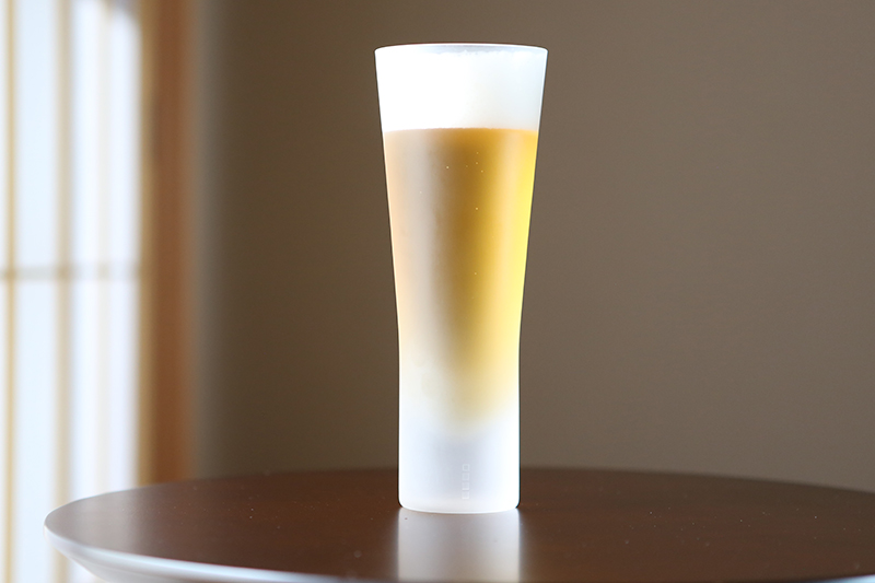 スマートでスタイリッシュな形状のビールグラス「生涯を添い遂げるグラス ビア フロスト」です。