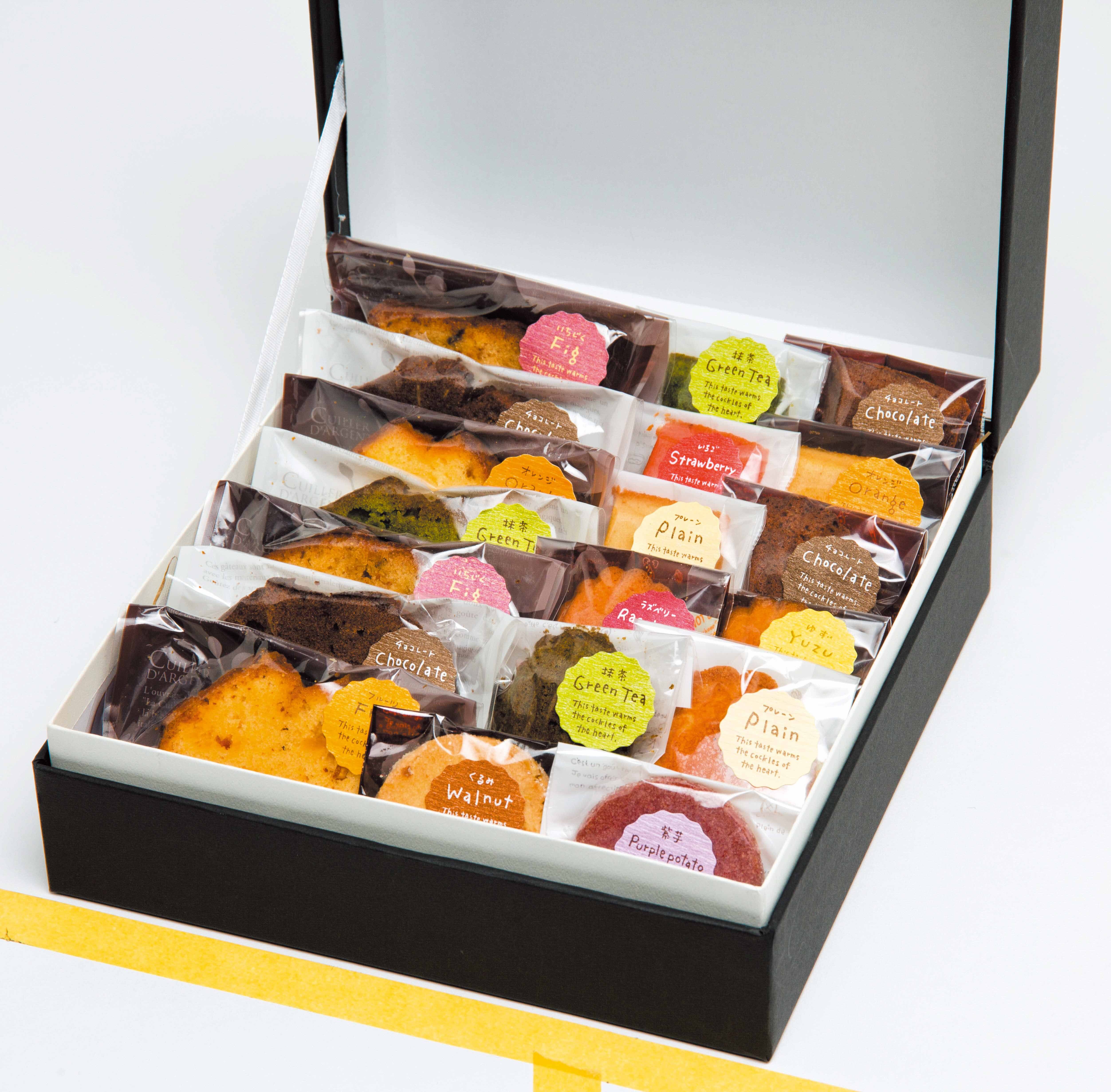 | 総重量 | 880g(箱込み)フィナンシェ5個・マドレーヌ5個・パウンドケーキ7個・サブレ2枚 |