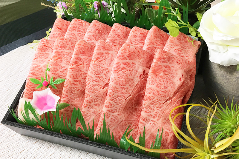 大口注文・法人のお問い合わせはこちらすき焼き、しゃぶしゃぶはもちろんですが、焼きしゃぶ、焼肉など、サッと炙るように焼いていただいても、ほどよく油がおち、とろけるようなくちどけの和牛を堪能頂けます。 お料理している側から、香ばしい香りがただよい食欲を刺激します。細かい霜降りがびっしりと入っていますので、融点が低く、解凍後は手で持っていただくだけですぐに牛脂がとろけ始めます。