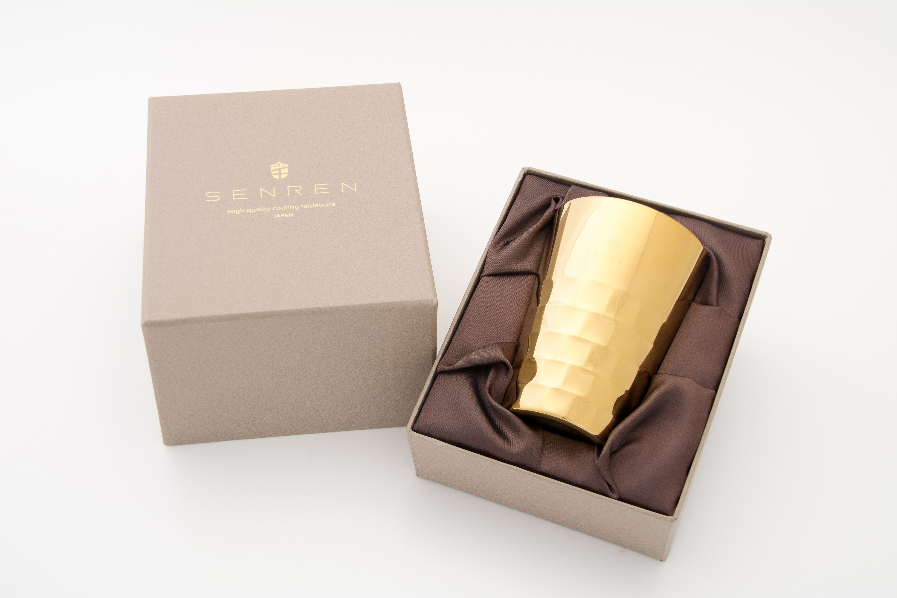 金色に輝くチタンをタンブラーの外装にコーティングしてあります。非常に高級感があり贈り物として人気があります。