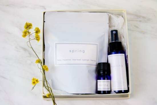 花粉症の方におすすめのブレンドハーブティー、エッセンシャルオイル、アロママスクスプレーのセットです。アロマを通じて鼻づまりや呼吸をすっきりとさせることができます。花粉症に悩まされている方へのプレゼントにオススメです。