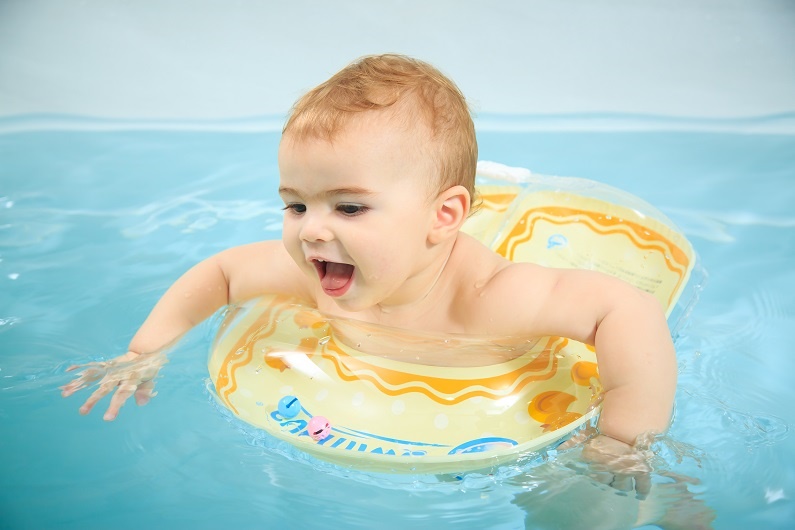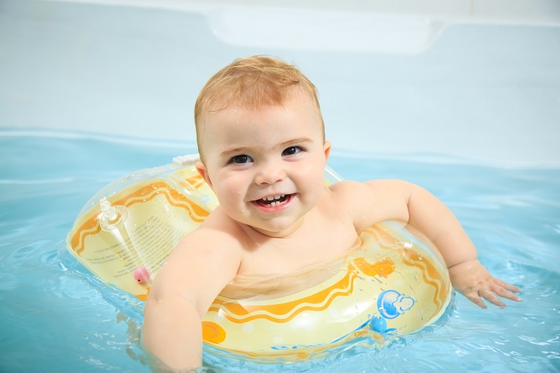 赤ちゃんが目覚ましく成長する時期です。水に浮かんで遊ぶことでバランス感覚を養い、浮力に支えられながら運動ができます。