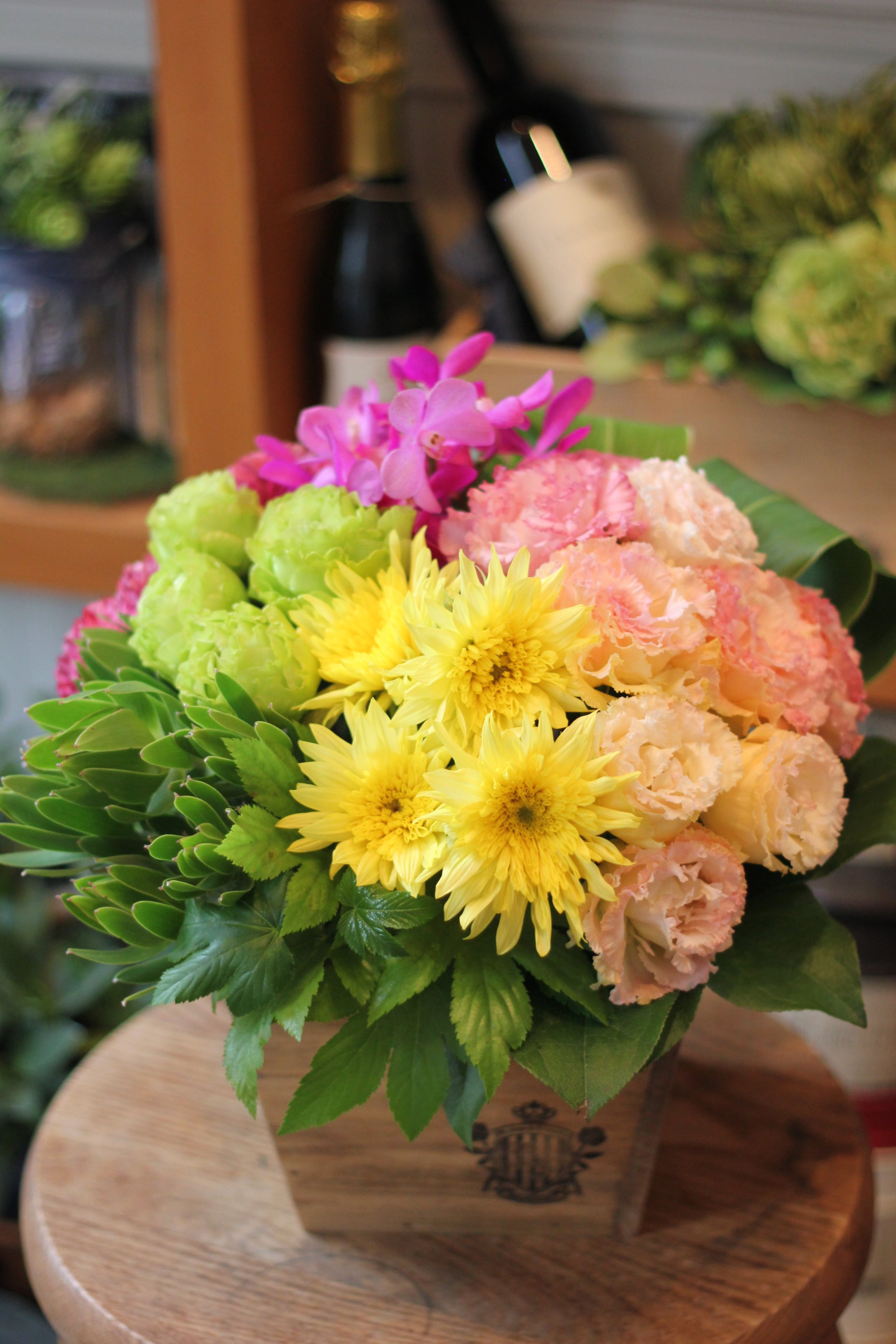 大口注文・法人のお問い合わせはこちら花瓶に移し替えずにそのまま飾ってお楽しみいただける、フラワーアレンジメントです。 誕生日のプレゼントや記念日、お祝いのギフトに。ボールのようなフォルムで、どこから見ても可愛いアレンジメント。爽やかさと上品さを備えた、どなたにも喜ばれるデザインです。