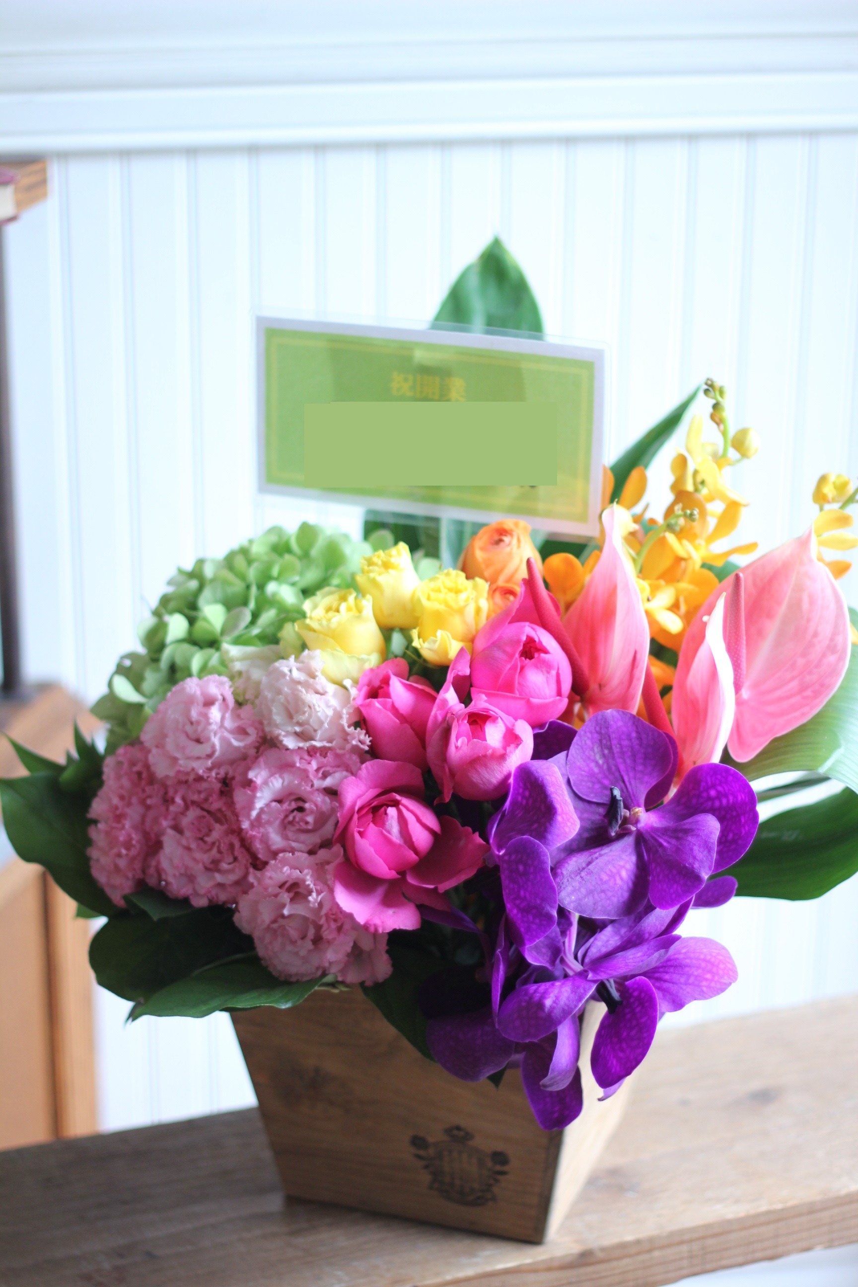 特に大きなサイズの商品(スタンド花、観葉植物、胡蝶蘭、大型のアレンジメントなど)には、立て札もお付けできます。 ※立て札の色やデザインはお花に合わせて変わることがございますので予めご了承ください。