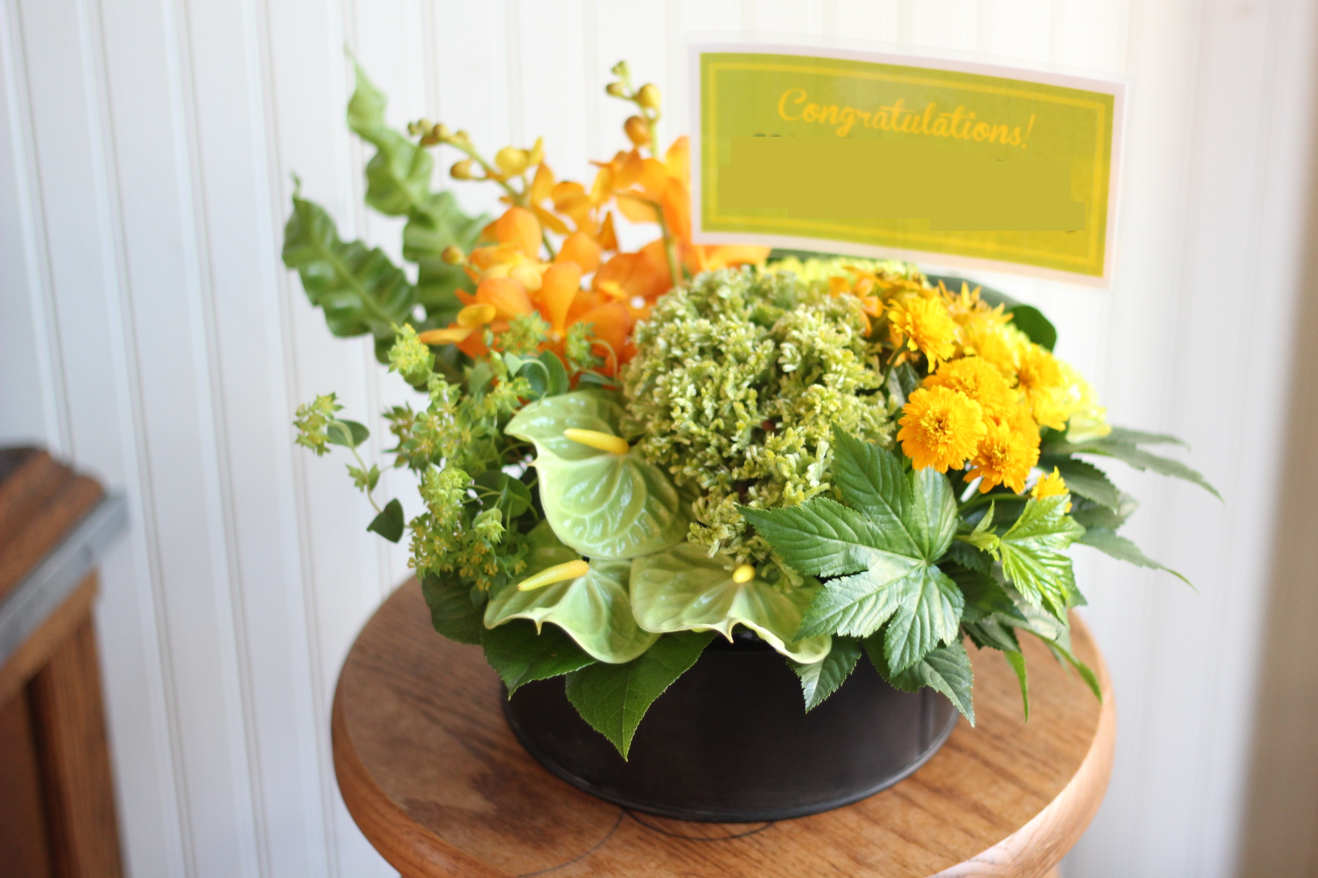 特に大きなサイズの商品(スタンド花、観葉植物、胡蝶蘭、大型のアレンジメントなど)には、立て札もお付けできます。 ※立て札の色やデザインはお花に合わせて変わることがございますので予めご了承ください。