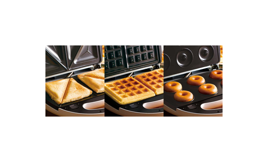 3種のプレートを付け替えればホットサンド、ワッフル、ドーナツがこの1台で簡単に作れます。
