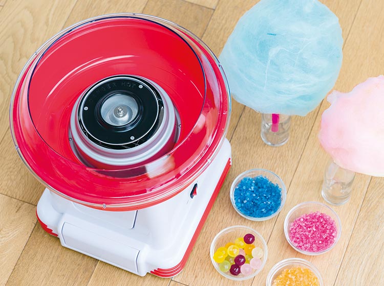 色々な味や色のキャンディーを入れれば自分だけのオリジナルわたあめが楽しめます。 アイデア次第で無数のバリエーション。