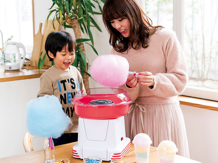 みんなで作れば楽しさも倍増です。 ホームパーティーなど人が集まる場面での盛り上げアイテムに! 盛りつけやトッピングのアレンジで、新感覚わたあめも楽しめます。