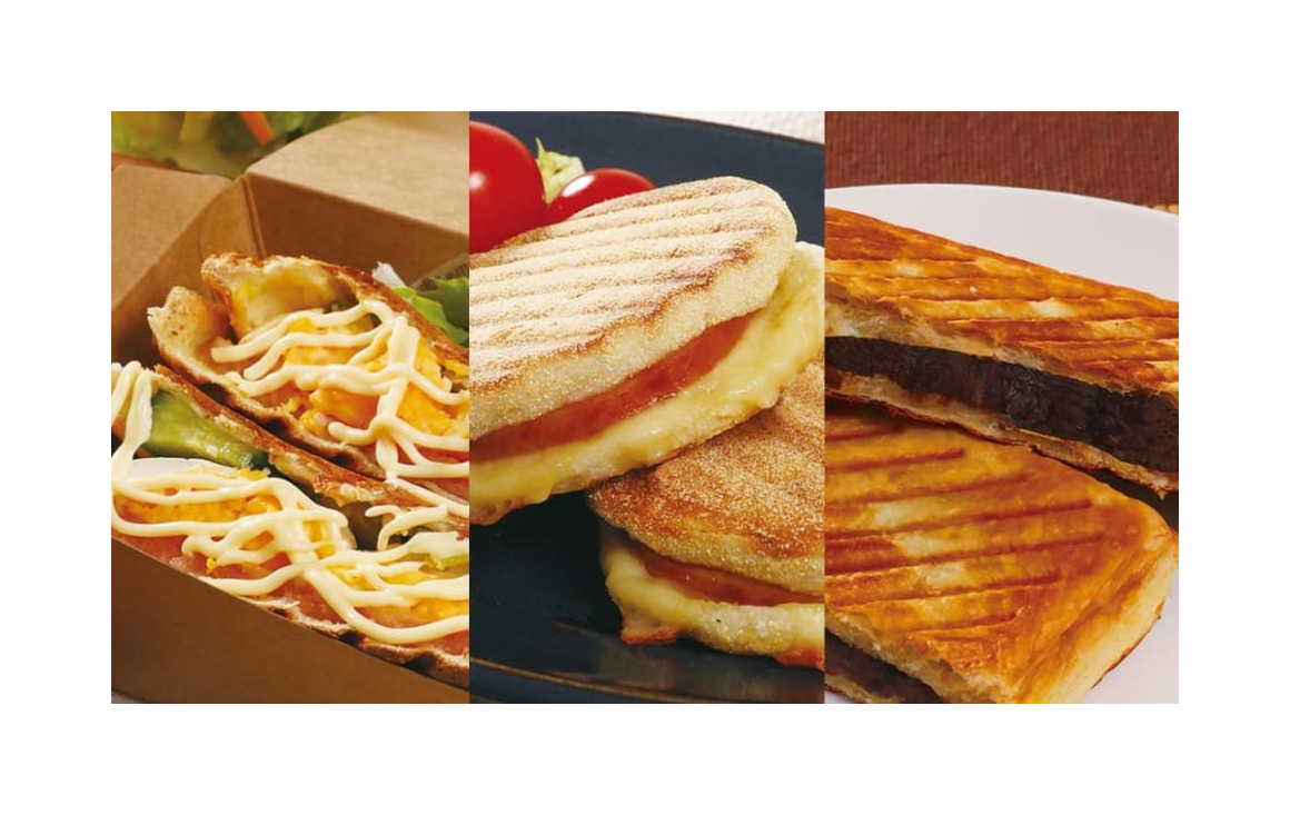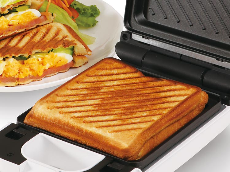 大口注文・法人のお問い合わせはこちらお好みの食材をパンにのせてフタを閉めるだけ。約3分でサクッと香ばしいホットサンドが焼きあがります。耳付き食パンを使えるので、耳を切り落とす手間もありません。 ※ホットサンドが焼き上がる目安時間は約3分ですが、焼き足りない場合は時間を延長し、お好みで調節してください。