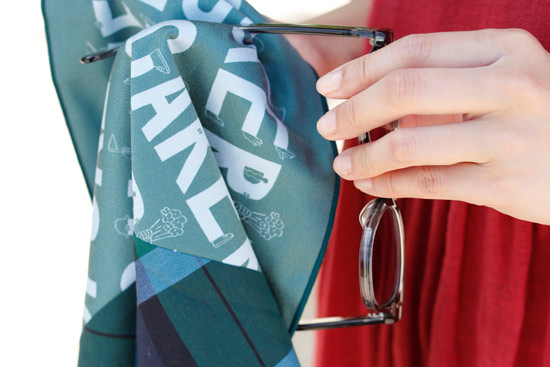 大口注文・法人のお問い合わせはこちら柄のプリント面でメガネやサングラスはもちろん、時計・携帯・PC画面・カメラレンズ・グラス・ガラスなど幅広いアイテムを拭いて綺麗にすることができます。表面チェック部分・裏面部分はいつも通りのハンカチとしてお使い頂けます。 ハンカチ部分はcotton100%で吸水性もばっちり。いつも持ち歩くハンカチで、身の回りの物もすっきり清潔に。