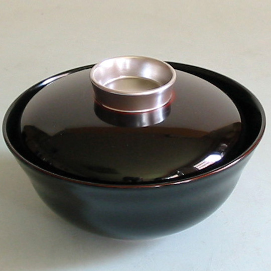 艶のある漆の溜(ため)塗りと朱塗りに、それぞれ金と銀がアクセントになって、とても華やかなお椀です。