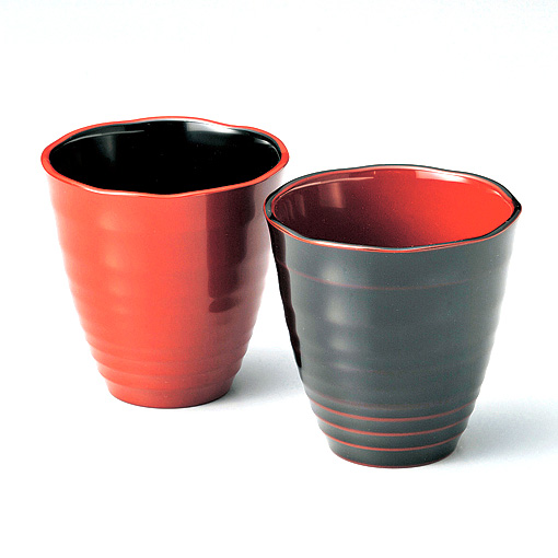 大口注文・法人のお問い合わせはこちら手頃な大きさで使いやすい、漆塗りのペアのフリーカップです。 ビールや焼酎、ソフトドリンクなど、自由に楽しんで頂けます。 朱と溜の2色のペアですが、中の色合いはそれぞれの色が逆になっています。 外側は少し凹凸がついており、また口の部分も波うっている独特のフォルムが魅力です。 漆塗りですがお手頃なお値段なので、ご夫婦への気軽な贈り物にもおすすめです。