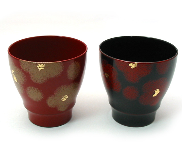 大口注文・法人のお問い合わせはこちらとても華やかな紅白の華を描いた、漆塗りのペアカップです。 今までの漆器にはなかった可愛らしいデザインが魅力。特別な塗りの技法で凹凸感のある華を描き、その中にアクセントとして金色を散りばめたデザインは、置いておくだけでまわりの雰囲気を明るくしてくれそうです。 漆塗りの朱と溜の2色のペアで、日常の食卓にも気兼ねなくお使い頂けます。