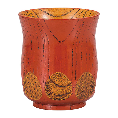 欅の木目と漆の色合いが調和した、珍しい木製漆塗りの湯呑です。