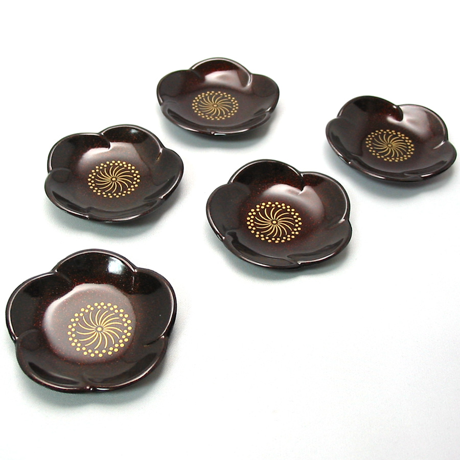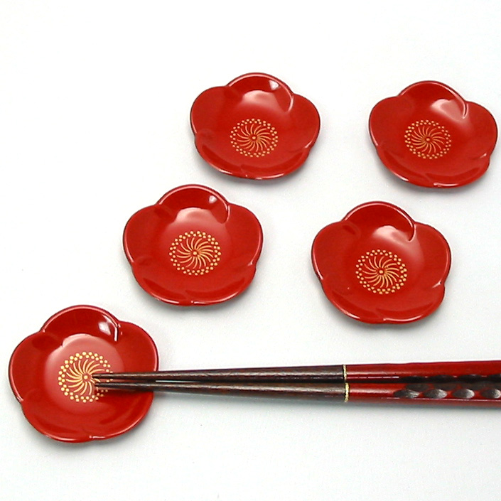 豆皿でも重宝する、便利な福梅形の箸置きセットです。梅の形のかわいい箸置きで、井助ではずっと変わらぬ人気を誇っています。