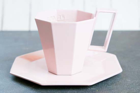 昨年オープンした銀座SIXでも販売されているKIKOF。デザインにこだわり、職人がひとつひとつ丁寧につくった信楽焼のカップアンドソーサーです。琵琶湖の素朴であたたかい土を使用していて、紙の薄さを表現することや八角形を保つために試行錯誤を重ねました。陶器にしか表現できない色彩が特徴的で、色の名前は琵琶湖の朝、昼、夕、月夜の琵琶湖の湖面をイメージしています。