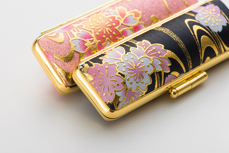 大口注文・法人のお問い合わせはこちら華やかな桜模様が美しい『桜』シリーズ。優雅に流れる川面と咲き誇る満開の桜をデザインしたケースです。 金メッキ仕上げの枠が高級感を醸し出す上品な印鑑ケース。人前でハンコを押す場面で自信を持って手にすることが出来る素敵なケースです。大切なハンコをしっかりと保管出来るつくりです。朱肉はきれいに押印できる上級朱肉をセット。