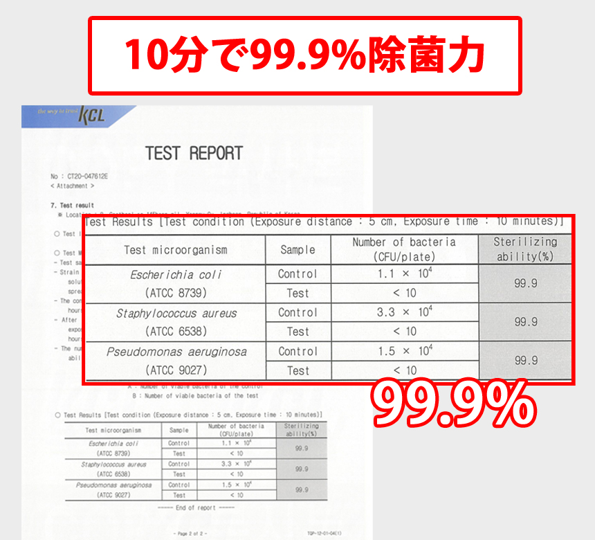 マスクについた目に見えない気になる菌をしっかりと、99.9%除菌することができます。