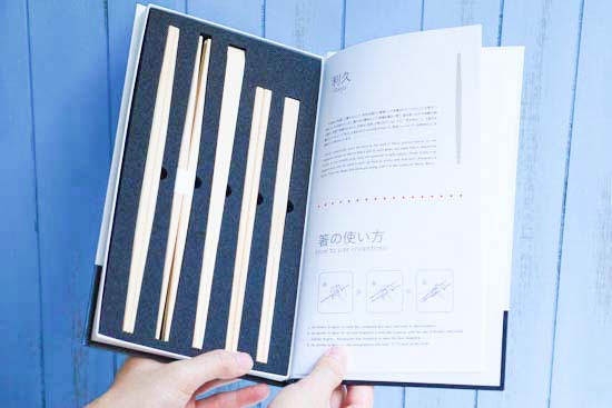 ブック部分には英語表記で箸の歴史や形状について書かれたページがあり、海外からのゲストに箸文化を紹介するためのギフトとしてオススメです。個別収納で海を越える持ち運びでも安心です。利休・卵中・天削・元禄・小判の5種の割り箸を一度に手に取ることのできる希少なアイテムのため、食通の人に贈るのも粋ですね。料理やシーンに合わせて箸を使い分けて、割り箸だからこそできる愉しみ方を。