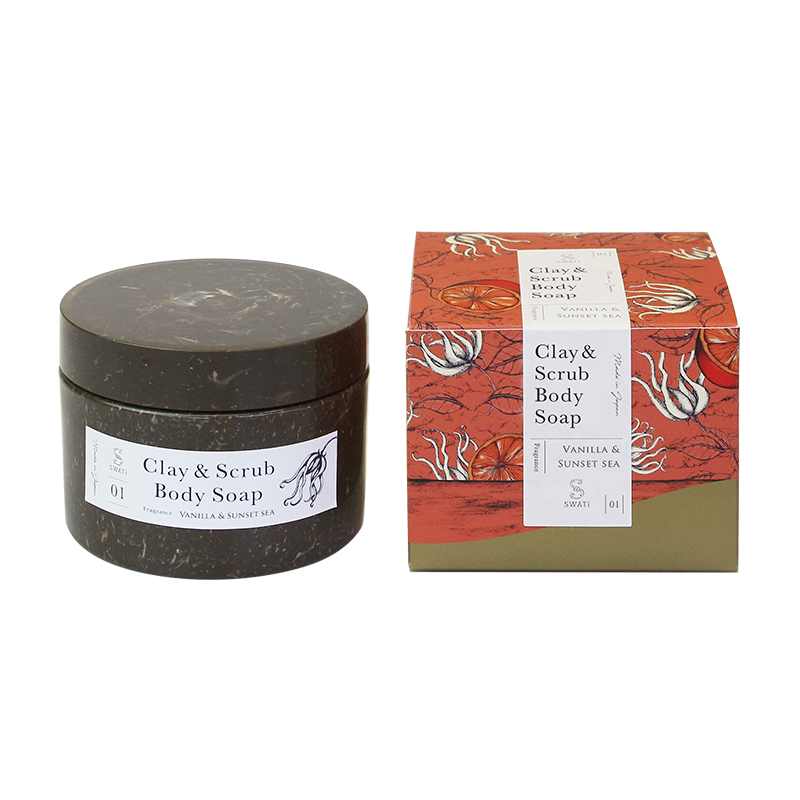 大口注文・法人のお問い合わせはこちら沖縄の海底泥にアプリコットの種を配合したスクラブソープ。泥吸着洗浄+スクラブ+ボディソープを兼ねたオールインワン。沖縄の海底泥が毛穴の汚れを吸着し洗浄、アプリコットの種粒子が古い角質を取り除き肌をなめらかにします。
