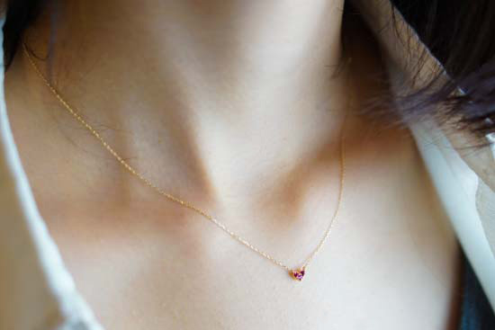 【25%OFF セール中】¥16,500→¥12,375かわいらしいハートモチーフのリバーシブルネックレスです。表側はダイヤモンド、裏側はルビーを贅沢にあしらっています。一本で二通りの使い方ができるので、重宝する便利なアイテムです。繊細な輝きで首元を上品に彩ります。大切な方への贈り物にいかがでしょうか?