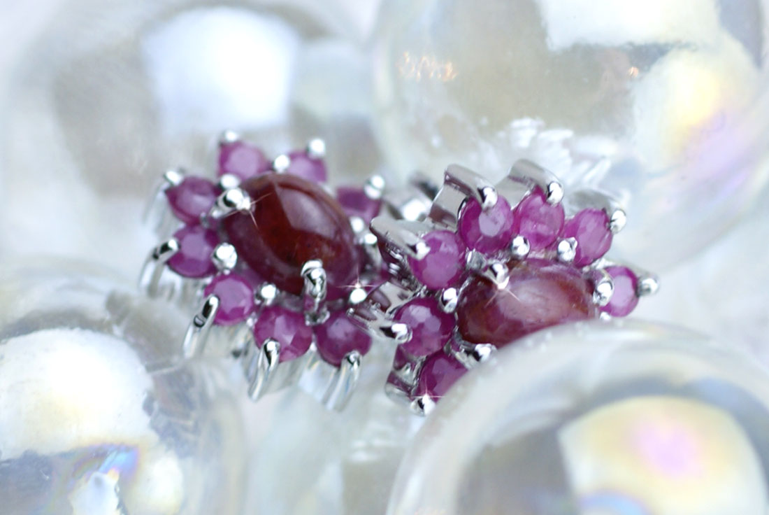 左右で22粒のルビーを使用し、手作りで丁寧に仕上げました。大切な方への贈り物としておすすめです。