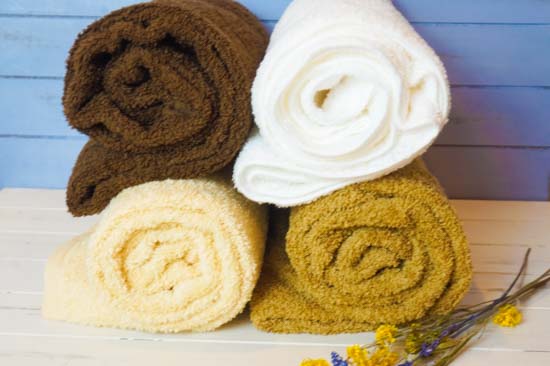 特殊な糸"スーパーZERO"が水分をぐんぐん吸収してくれるので、お風呂上がりの肌や髪の毛もすぐに乾きます。繊維1本1本の隙間に、水分を素早く吸収する素材と製法を工夫しています。