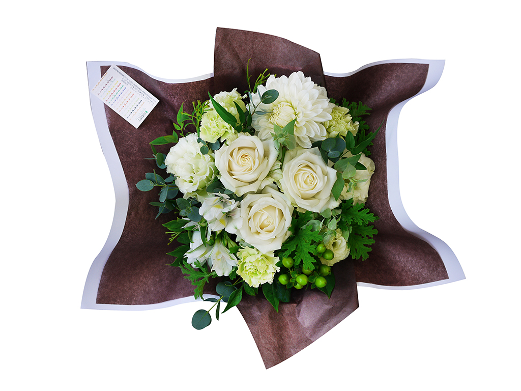 ストレスから解放され、穏やかな安らぎを感じる白・グリーンの組み合わせ。 清楚で上品なあの人へ。