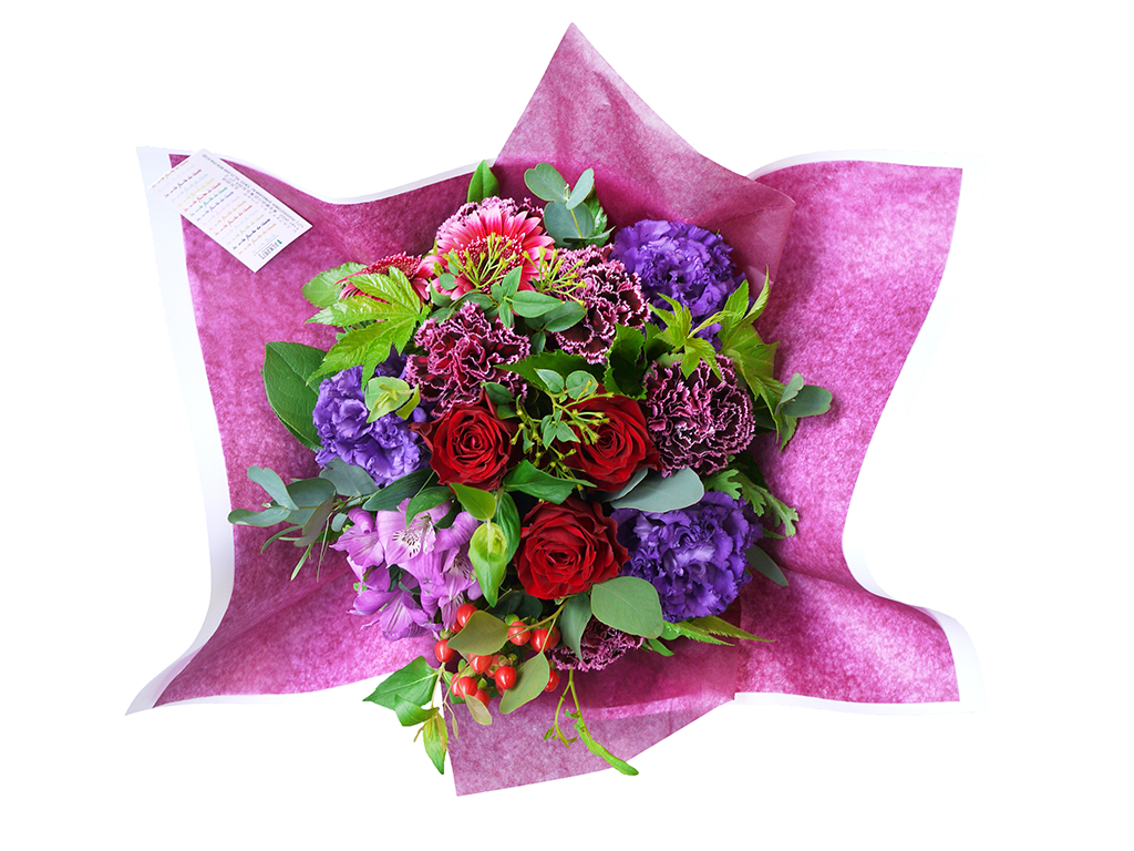 情熱的で華やかな赤と、上品で優雅な紫色の組み合わせ。大人っぽいあの人へ。