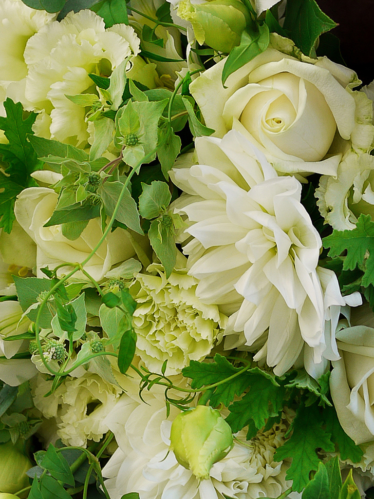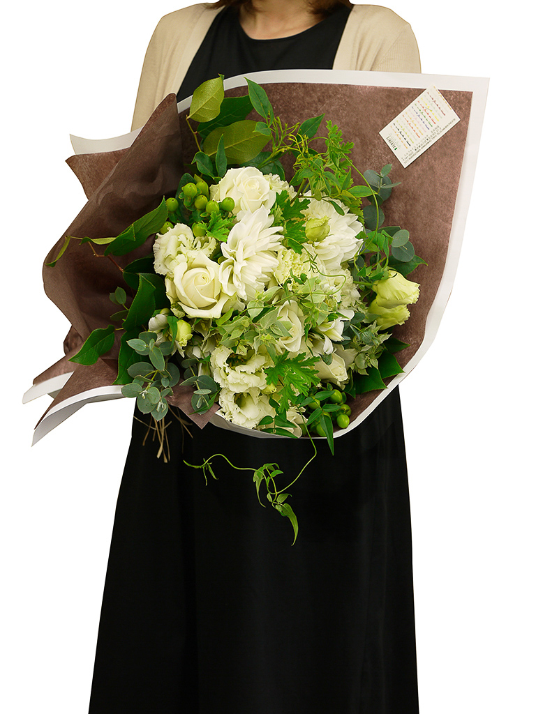 ストレスから解放され、穏やかな安らぎを感じる白・グリーンの組み合わせ。 清楚で上品なあの人へ。