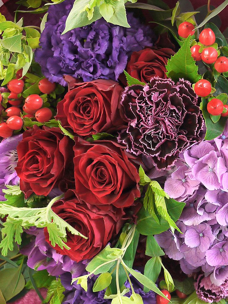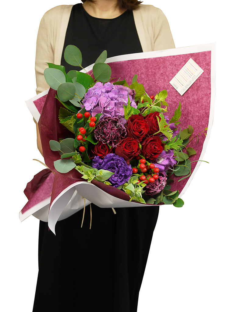情熱的で華やかな赤と、上品で優雅な紫色の組み合わせ。大人っぽいあの人へ。