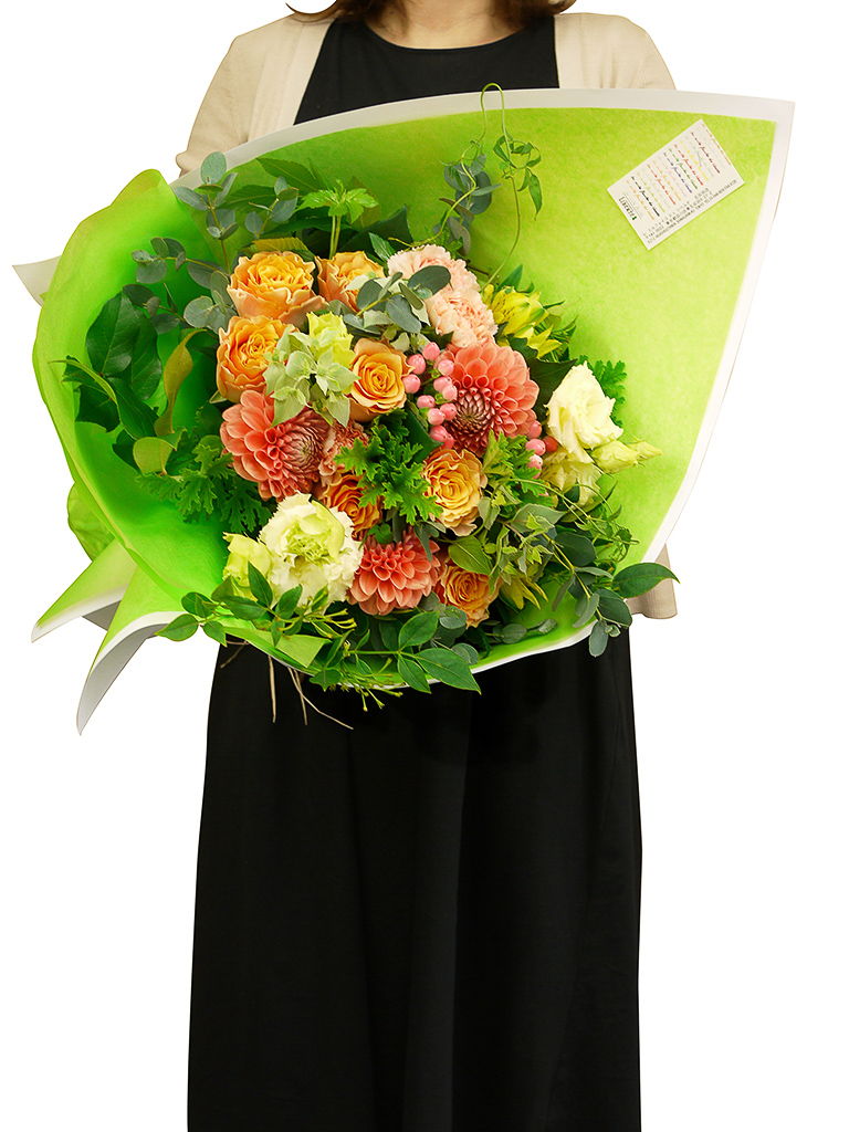 | サイズ | 直径約35cm× 47cm ※サイズはラッピングを含まないお花のサイズの目安です。お花の種類によって多少前後いたします。 |