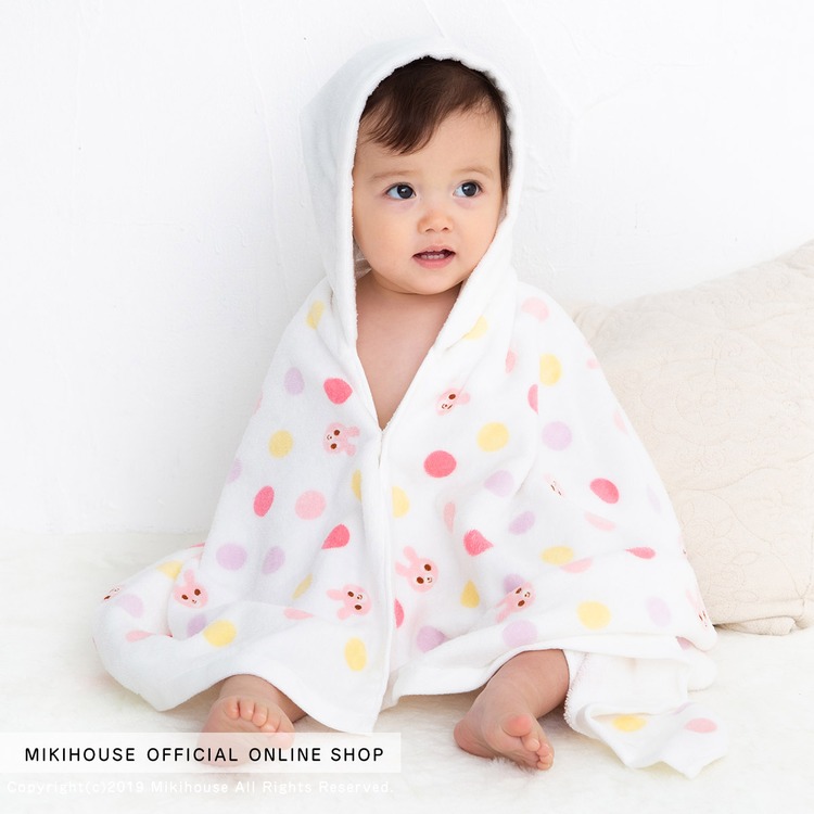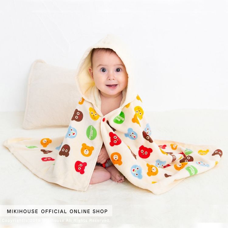 <バスポンチョ> 赤ちゃんとのお風呂タイムで活躍。パパ・ママが支度をしている間、赤ちゃんをこのタオルにくるんで体が冷えないようにしてあげます。