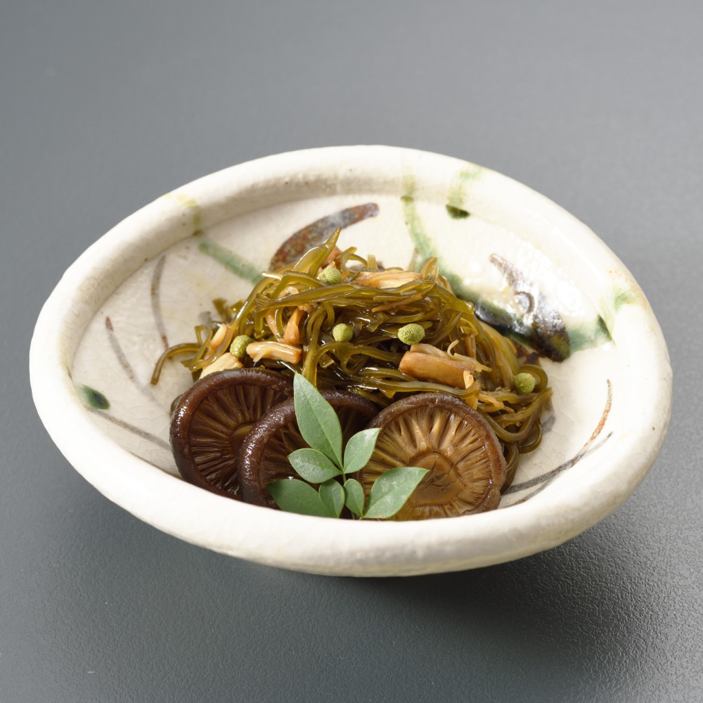 かさの肉が厚く、味・香り共に抜群な国産どんこ椎茸と 新鮮な貝柱、昆布の旨味が重なる味わい深い逸品。 たまり醤油や砂糖、お酒等で味が染み込むまでじっくり煮込んだ 肉厚などんこ椎茸の食感を、凝縮された旨味とともにお愉しみください。
