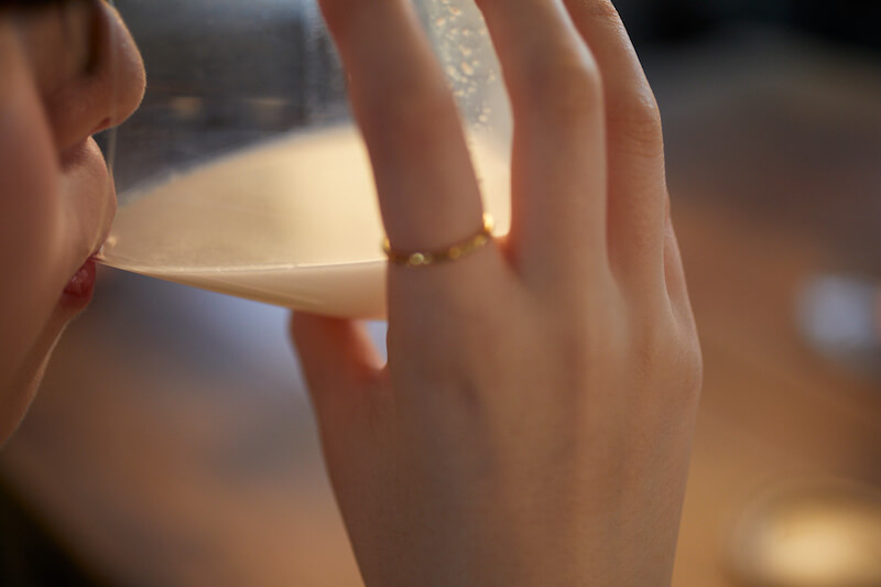 お米の細かな粒や酵母がたくさん含まれています。 白く濁っていて、口当たりはとても優しく滑らかです。 お米の味わいや酵母が作り出す酸味をダイレクトに感じられます。 透明な日本酒では味わえない独特の美味しさがあります。