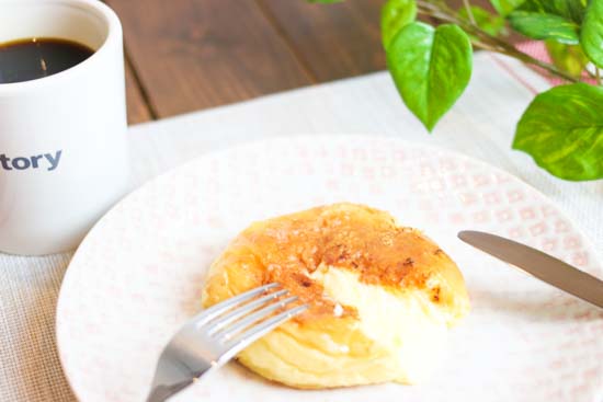 大口注文・法人のお問い合わせはこちらパン生地表面のカリっとした軽い食感と、アツアツのクリームの相性が抜群です。焼カラメルをパリっと割りながらナイフを入れた瞬間、あふれる温かい濃厚カスタードがとろ~り広がります。見た瞬間に笑顔になるトレンドスイーツ!もらって嬉しいのは間違いなし。何回でも食べたくなる一品です。ぜひデザートや朝食に、優雅なひと時をお楽しみください。