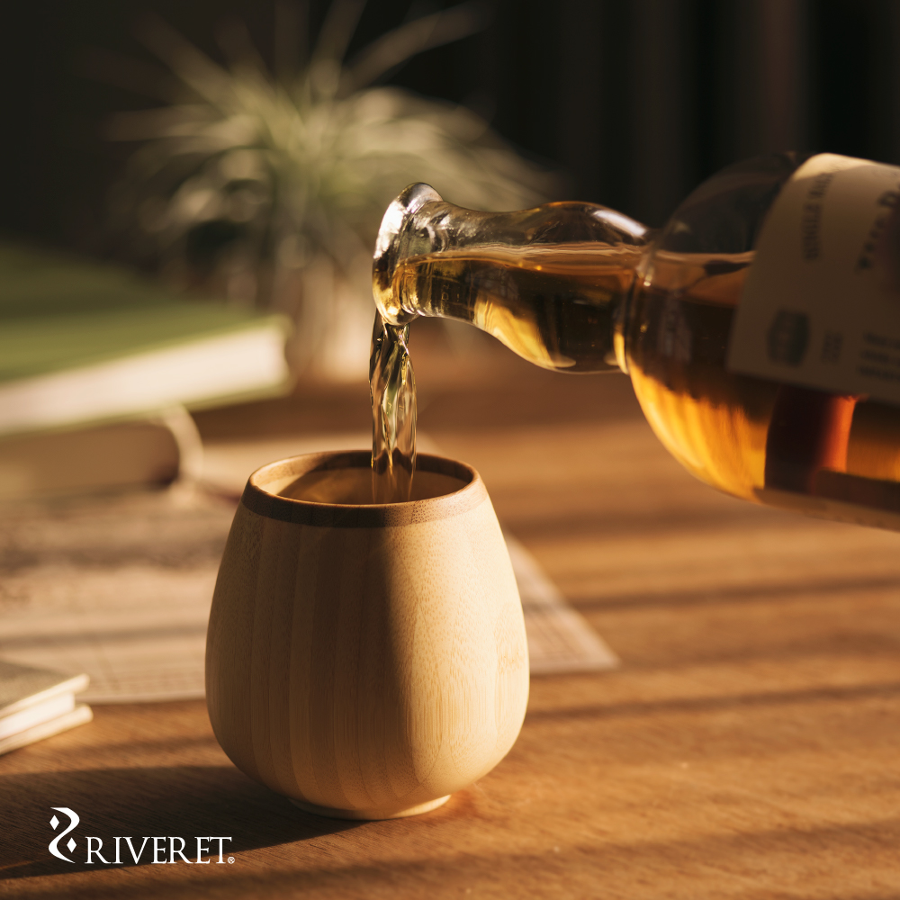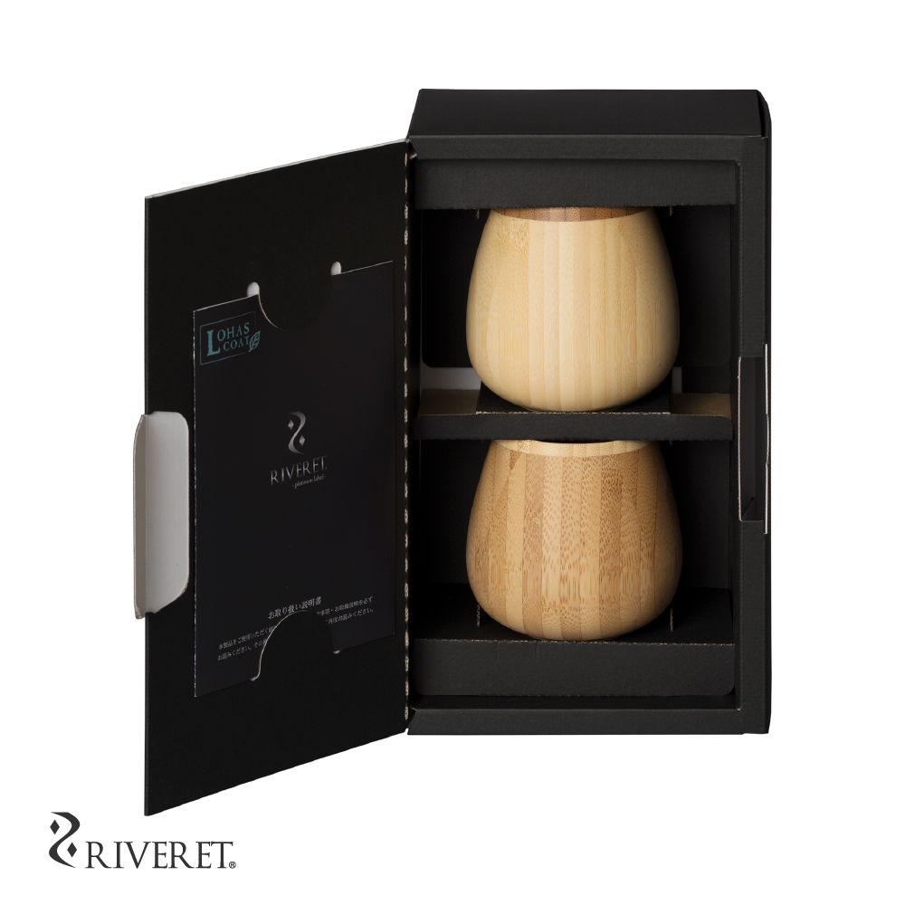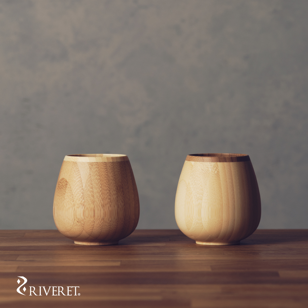 陶器や金属、ガラス製に比べ熱伝導率の低い天然素材製の【RIVERET】。 お酒の味わいを邪魔しないその理由は、そそがれる液体や外気の温度に左右されず、うつわ自体の温度が安定していることにあります。 カラーは天然素材本来の色味をいかした高級感のあるホワイトと、高温で燻すことで色を変化させた趣のある色合いのブラウンをご用意。