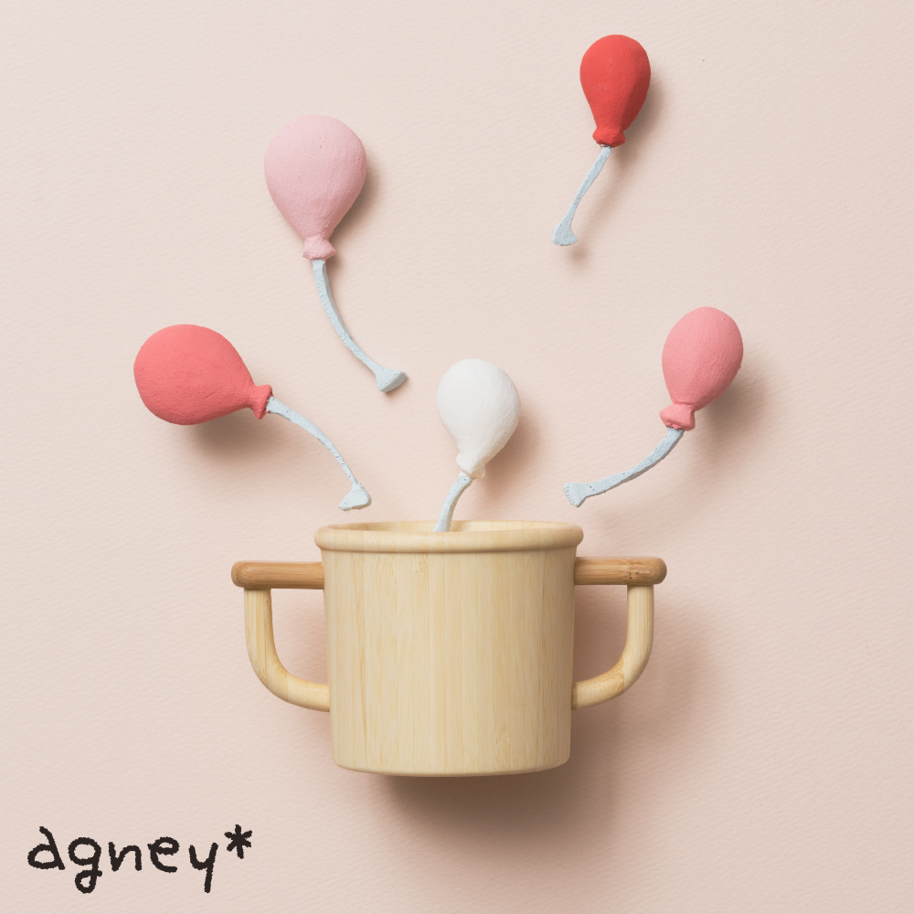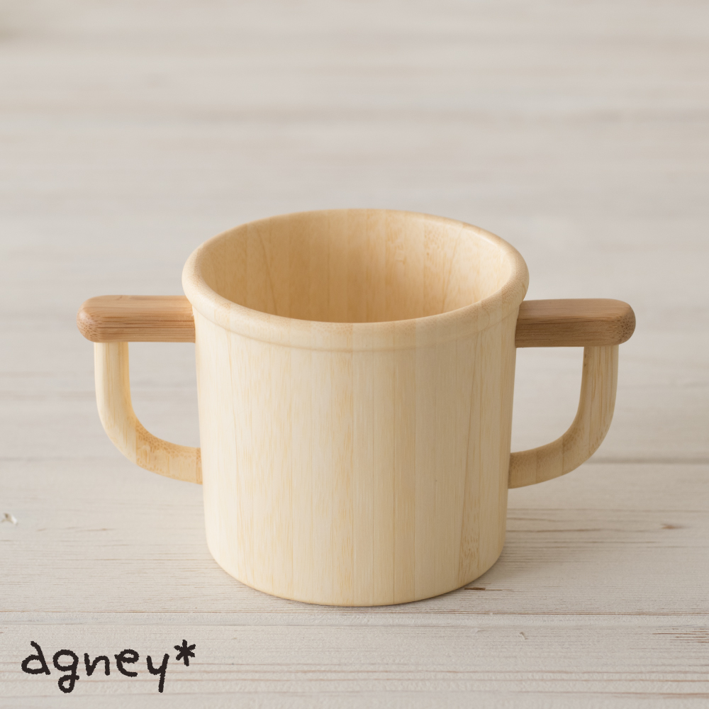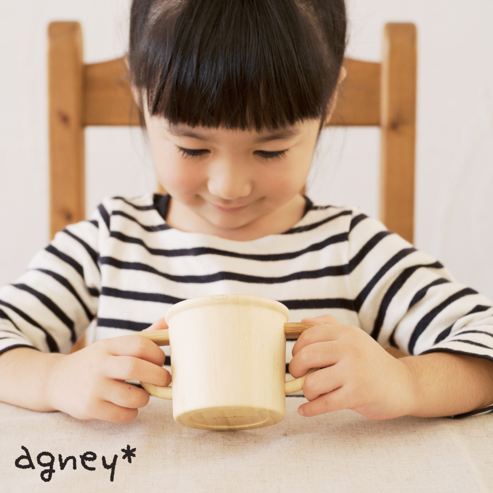 大口注文・法人のお問い合わせはこちらこどもたちの小さな手は、まだまだ十分な握力が備わっていません。 握ったつもりでいてもついついほかの事に気をとられて、スルリッと落としてしまうことも。 ドキッ!としますよね。 そこで考えたのが独特の持ち手がついた「アグニ両手ーマグ」。 飲み口と水平に付けた、持ち手上部の平らなパーツ。 親指へ感覚的に角度を伝え、安定感をグッと高めてくれるのです。 初めて自分の手で飲む爽快感! パパやママのまねっこ「ぷっはぁ~!」が聞けること間違いなしです。