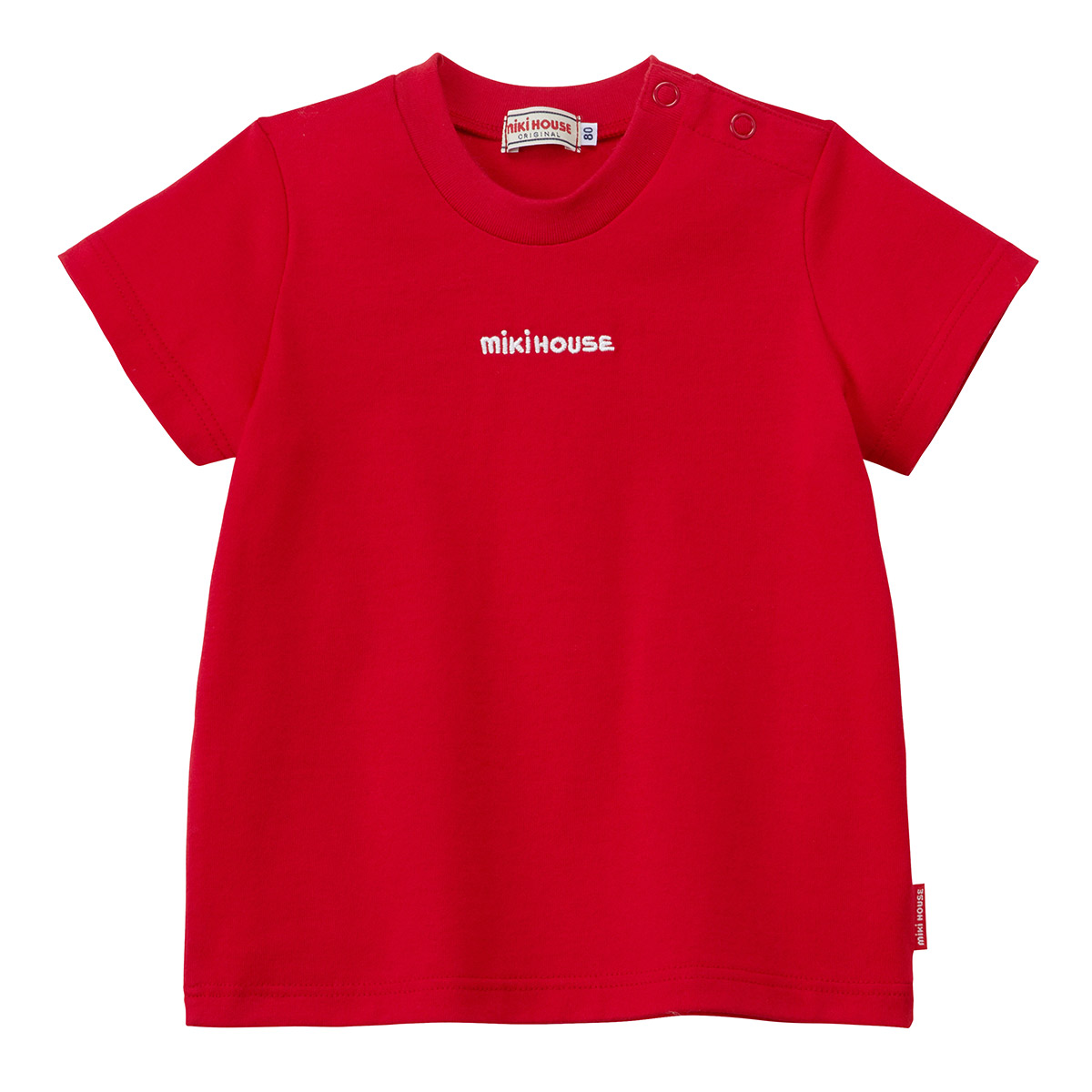 【25%OFFセール】ミキハウスのロゴ刺繍が入った半袖Tシャツです。