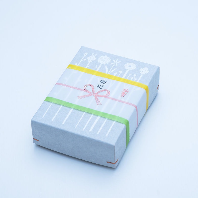 専用の外箱に入れてお贈りいたします。 お花が描かれた外箱に熨斗をまくと、 花束を連想させるデザインになっています。