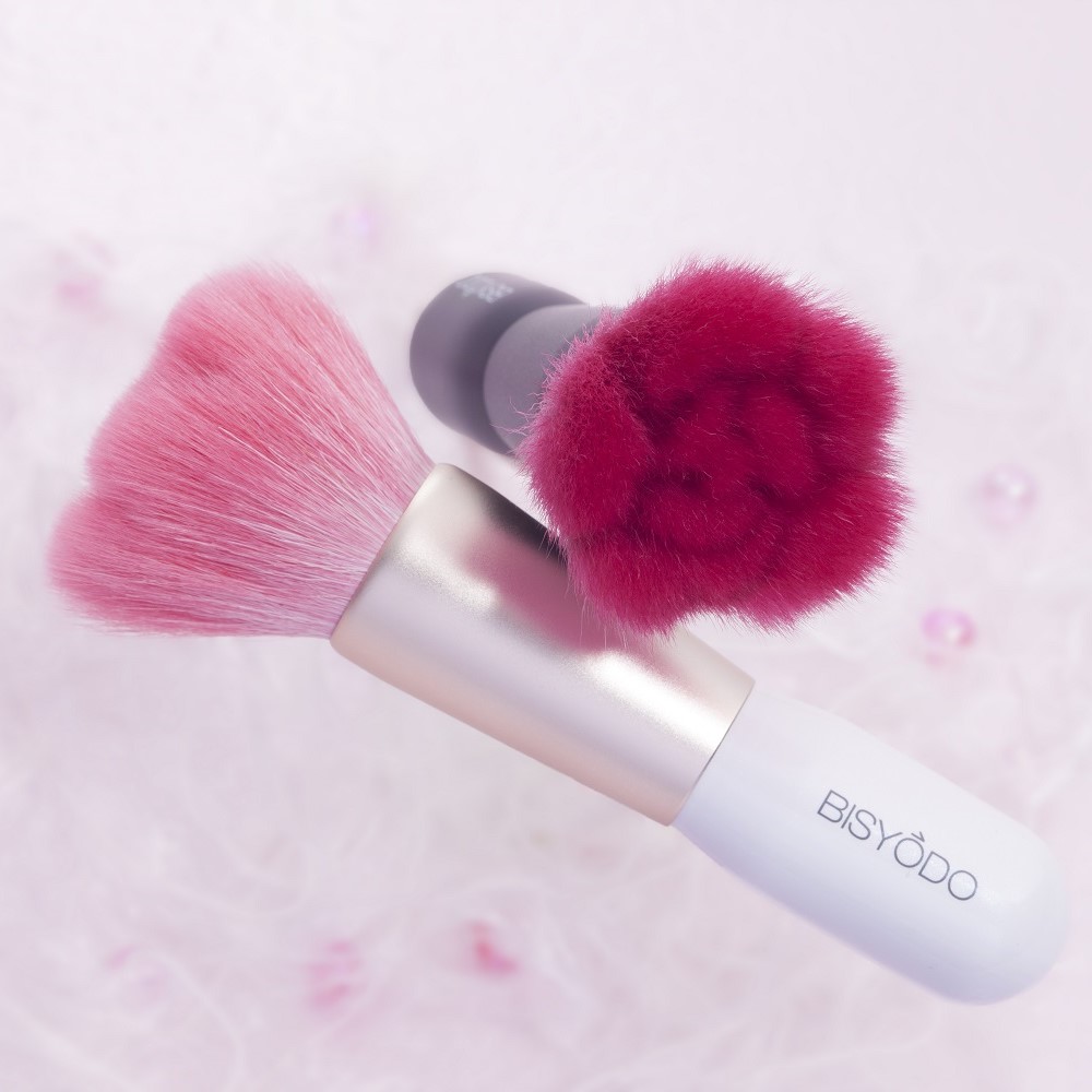 大口注文・法人のお問い合わせはこちら薔薇の花を型取ったパウダーチークブラシは、その花びらと花びらとの間に空気を含み、 とても艶やかな仕上がりの肌を演出します。 毛材は高級品質の山羊毛(粗光峰)を使用しており、 肌当たりは大変柔らかく、しかも粉含みが良い 本格的化粧筆です。