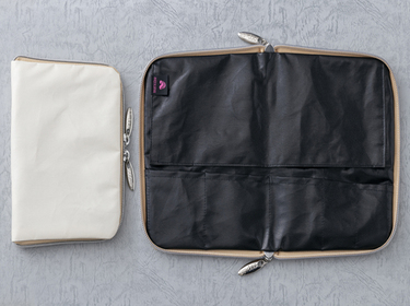 化粧筆用ポーチは、ファスナーを全開にすれば筆やコスメが一目瞭然で、取り出しやすくとても使いやすいです。