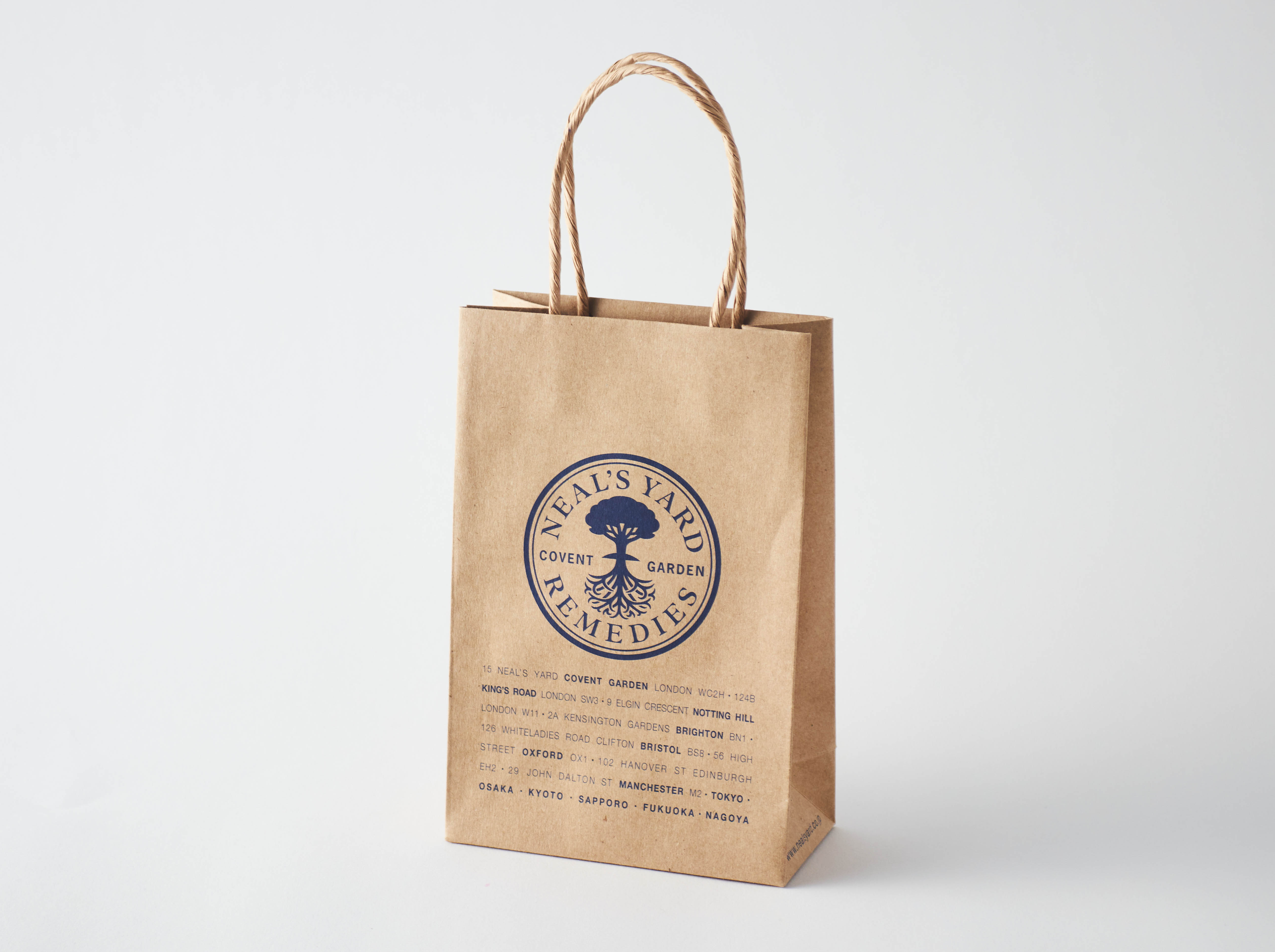 ニールズヤード レメディーズオリジナルの紙袋です。およそ幅12×奥行き6×高さ18cm(袋部分のみ)。